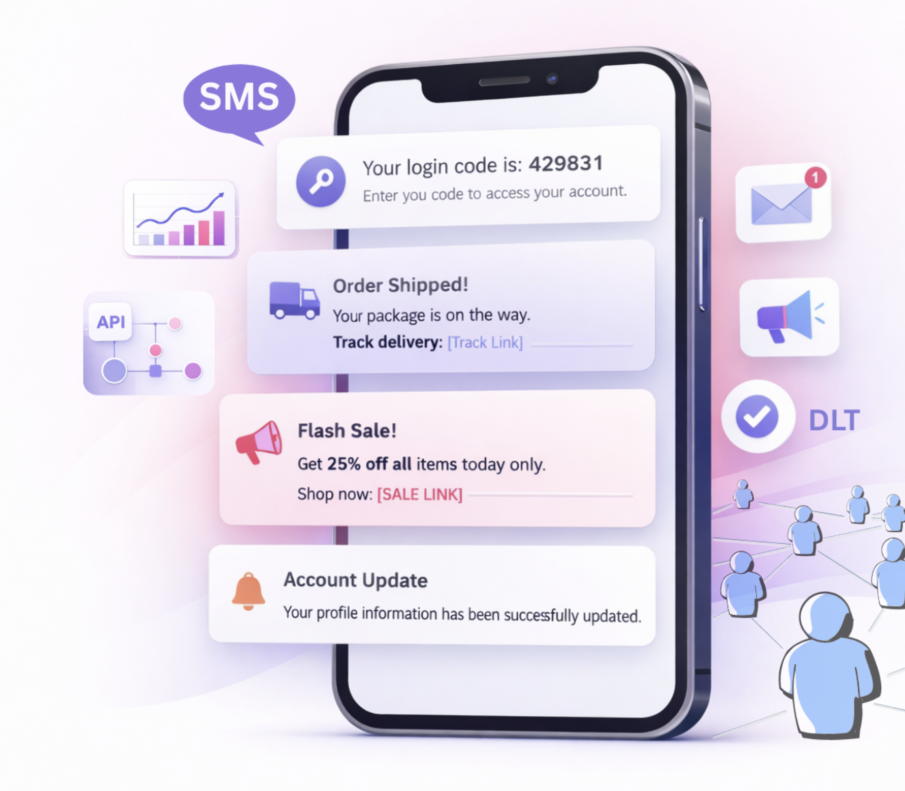 Instant OTP & Alerts SMS Via Secure APIs | Direct Telecom Connectivity | Full DLT Support | Real-time Delivery Report
